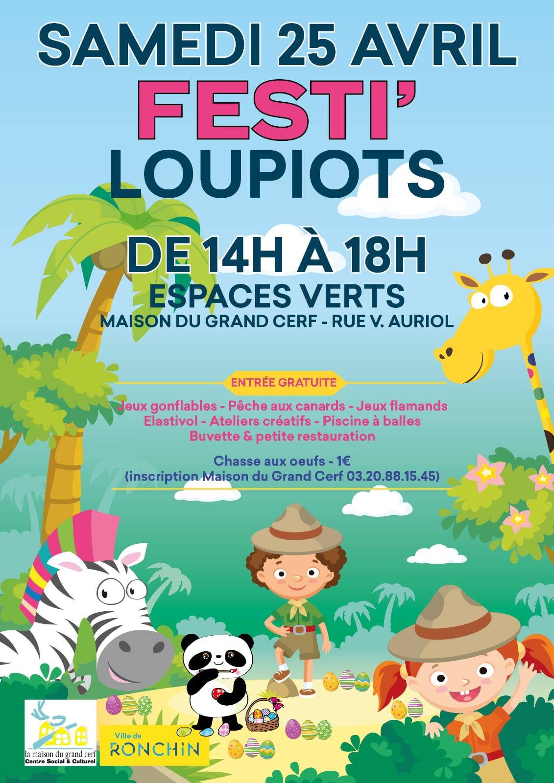 Festi'Loupiots est un événement dédié aux familles ! Ce temps récréatif organisé par la Ville et la Maison du Grand Cerf, se déroulera le samedi 26 avril, de 14h à 18h, aux abords du Centre social et culturel.