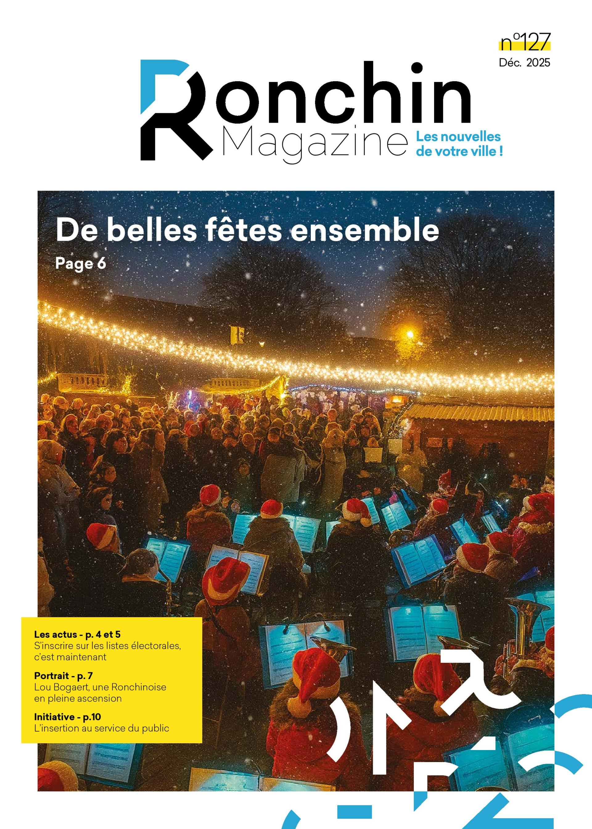 Le numéro de décembre 2025 du Ronchin Magazine (n°127) est disponible cette semaine ! Que vous l’ayez déjà eu ou soyez en passe de le recevoir dans votre boite aux lettres, vous pouvez également le retrouver ici en version pdf ou en feuilletable.
