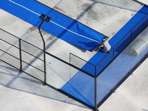 Le padel est un sport de raquette mêlant tennis et squash. Il se joue sur un terrain plus petit, entouré de vitres et grillages qui font partie du jeu.